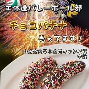 例年通りチョコバナナを販売します!場所は中庭入ってすぐ